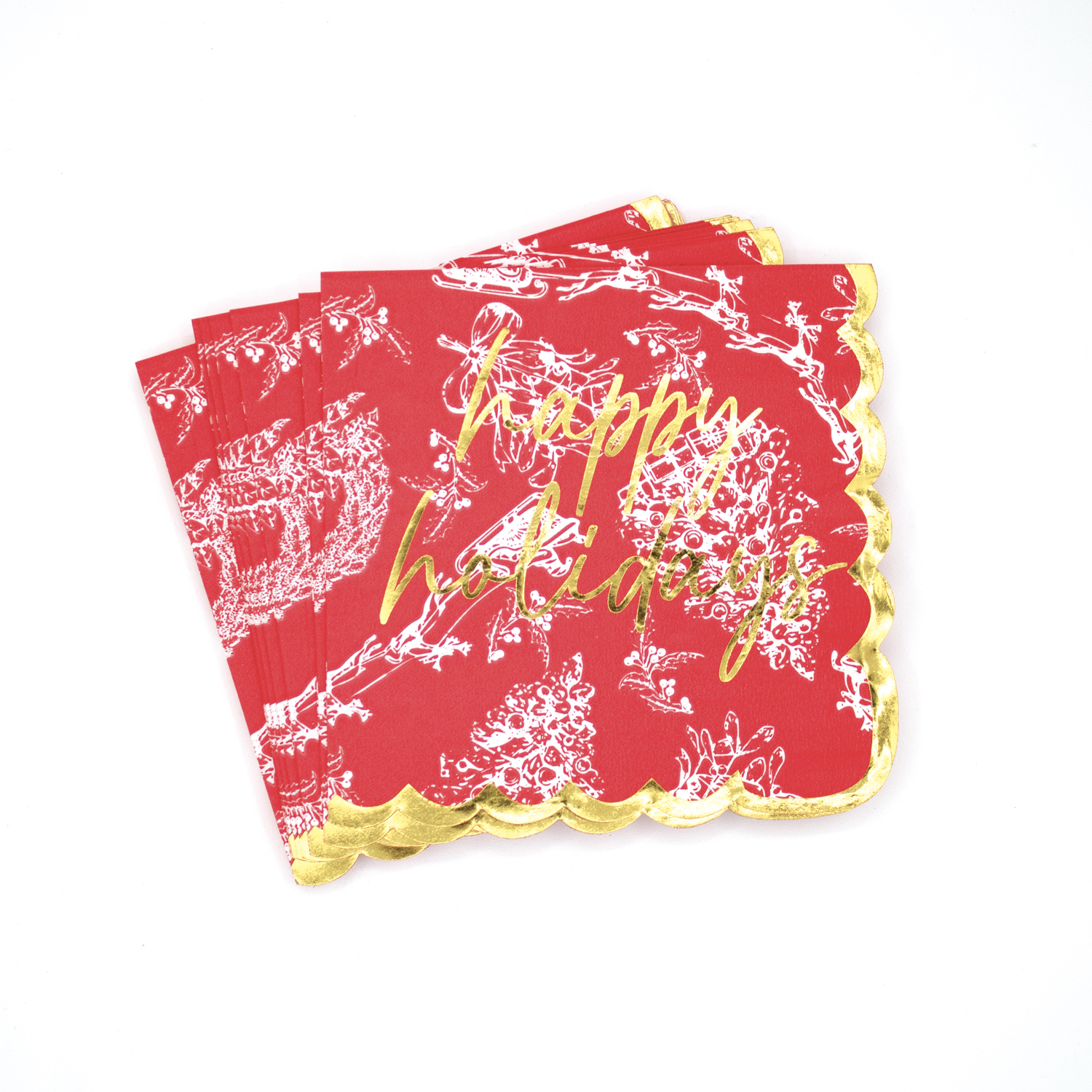 Light up any special occasion during the holidays with these elegant Red Toile Paper Guest Towel Packs. Perfect for any table, bathroom, or bar cart, these gorgeous towels will surely be the talk of the night. Crafted with gold-colored scalloped edges and red toile print. With a stylish rattan or bamboo guest towel tray, it makes the ideal present for any special occasion. These delightful towels will impress your guests while they relax and enjoy their evening. Make sure your Christmas event is one to remember.